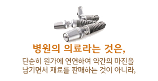 | 모든 임플란트 시술을 직접 시술합니다. 또한 임플란트 기둥에 대해 평생보장 A/S(ASTRA에 한함)를 시행합니다. |